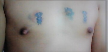 I have a feminine nipple on my chest and tattoos on both breasts, I really like hump on bed. I like being woman.