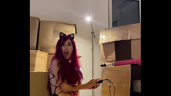 Joven pelirroja Beauty Girl baila striptease sexy y prepara máquina sexual con consolador en la boca 5 min